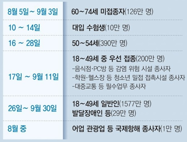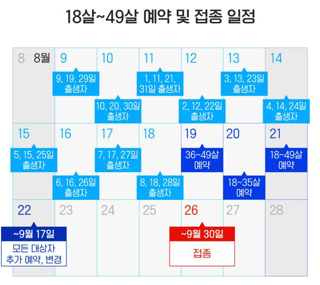 40대 백신접종 예약 방법 (사전예약 10부제 신청방법) 40대 코로나 백신접종 예약 시기는 오는 2021년 8월 9일부터 시작됩니다 백신예약 10부제. 7월 30일 18세부터 49세분들의 백신 10부제 예약에 대한 사항이 발표되었습니다.
